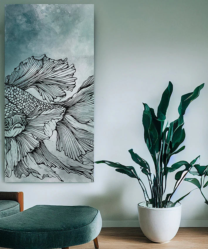 The art print is printed onto canvas and wrapped around a hand-built timber frame with a measurement of 3cm. A backing board is added to provide rigidity and frame stability.
