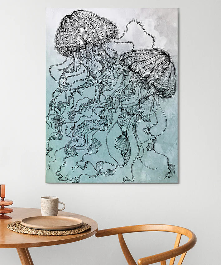The art print is printed onto canvas and wrapped around a hand-built timber frame with a measurement of 3cm. A backing board is added to provide rigidity and frame stability.