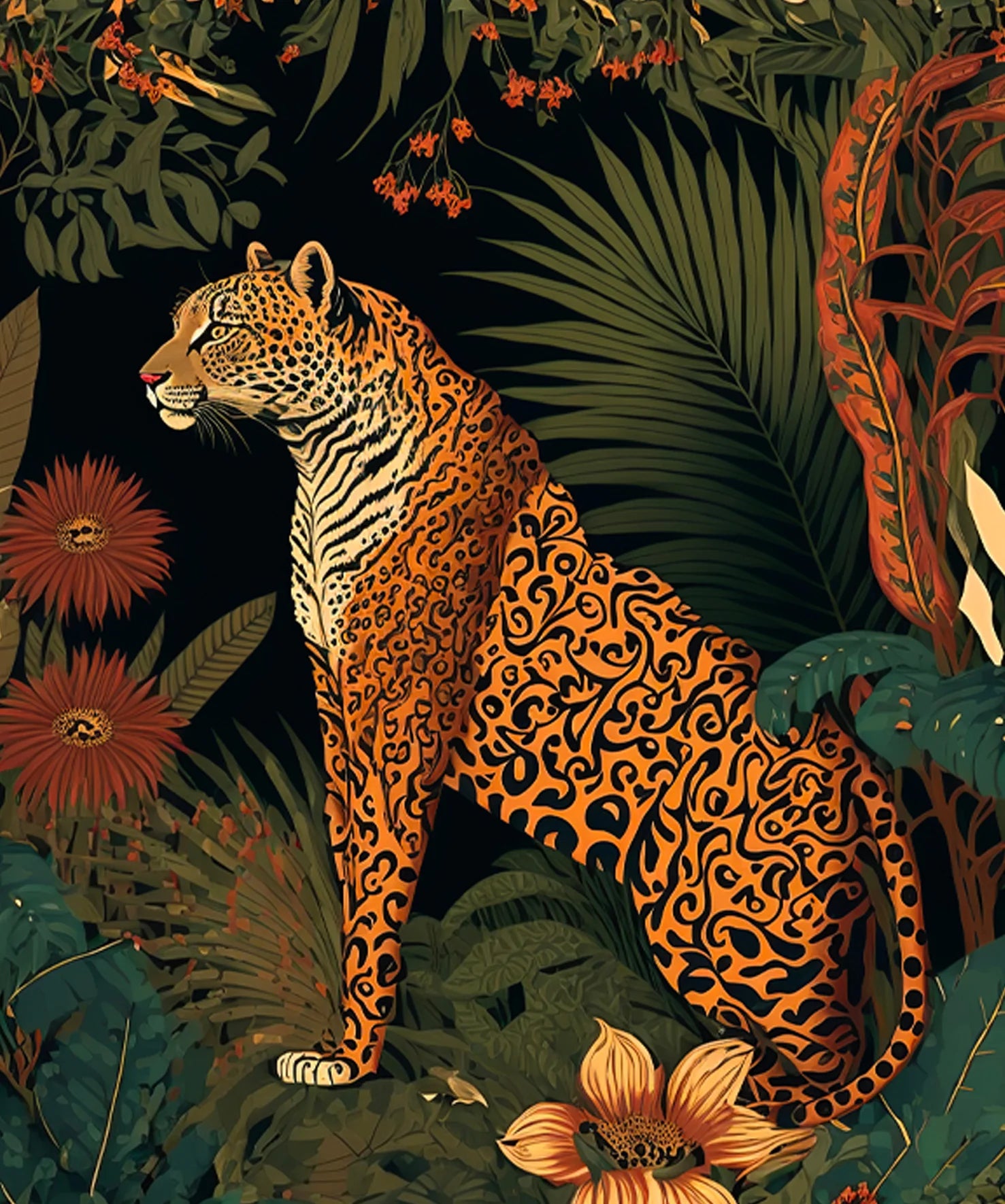 This bohemian colourful Jungle scene will brighten up any interior and invite nature inside.