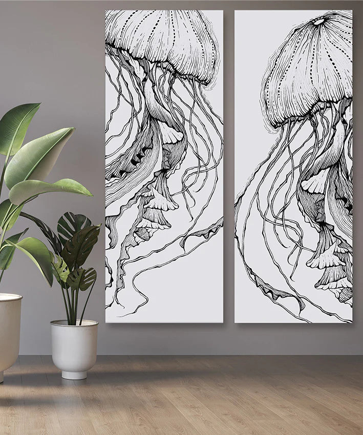 This Dancing Jellies set of 2 art pieces is part of our exclusive Limit Edition series of 50 prints. The background on this art piece is white.