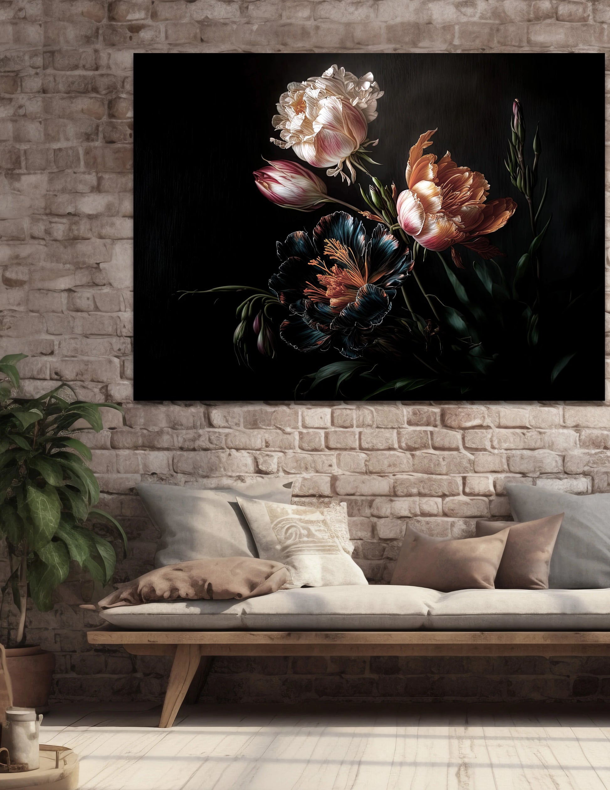 When orderding a canvas in frame, the canvas is placed within the frame giving it a finished look. The frames are not delivered separately, the canvas will already be mounted within the frame. We use a narrow frame with a 0.5cm edge and the frames are available in black, white and wood. A backing board is added to provide rigidity and frame stability. The wood colour and texture varies as these are handmade.