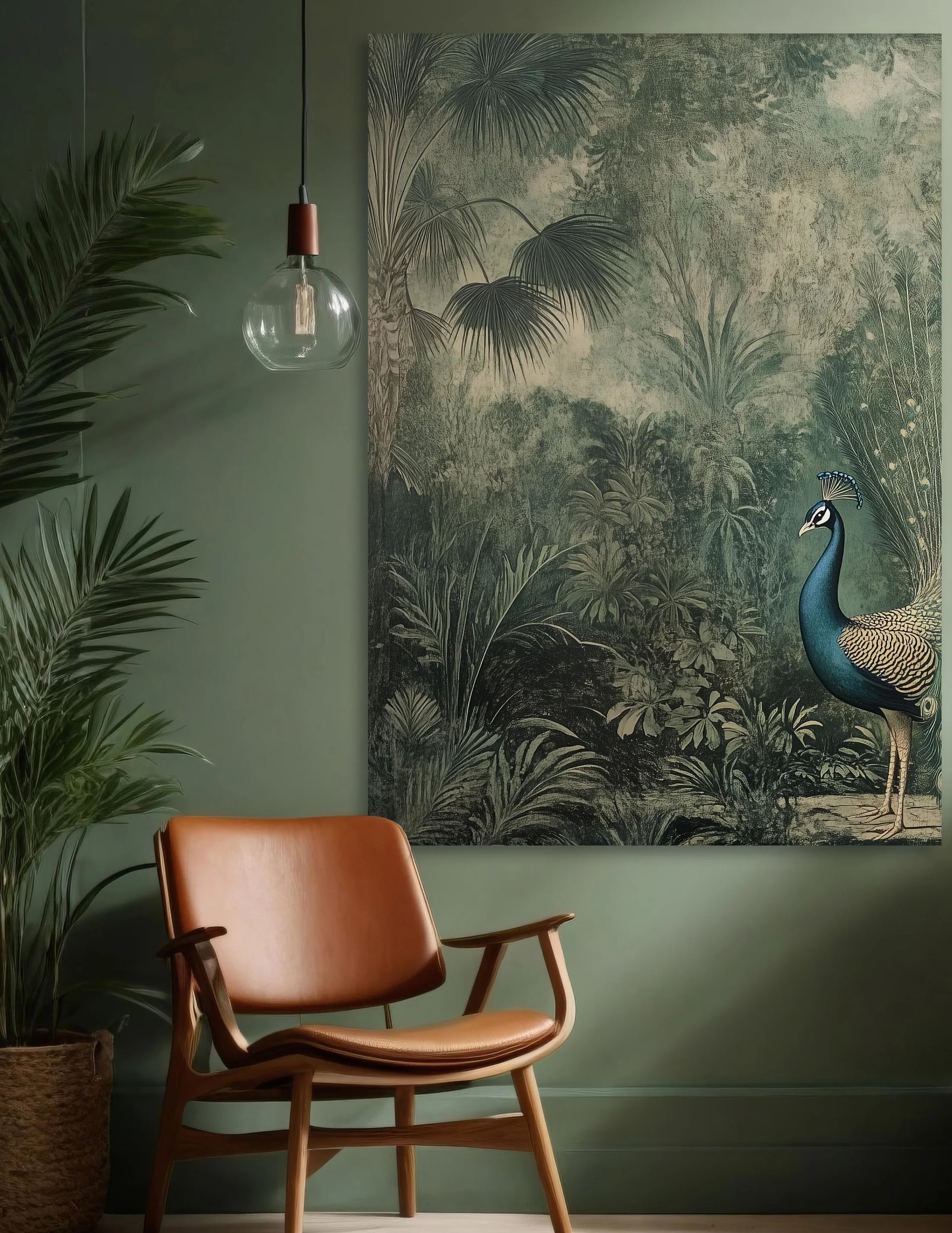 Bohemian, Vintage inspired Portrait of a Peacock in jungle.