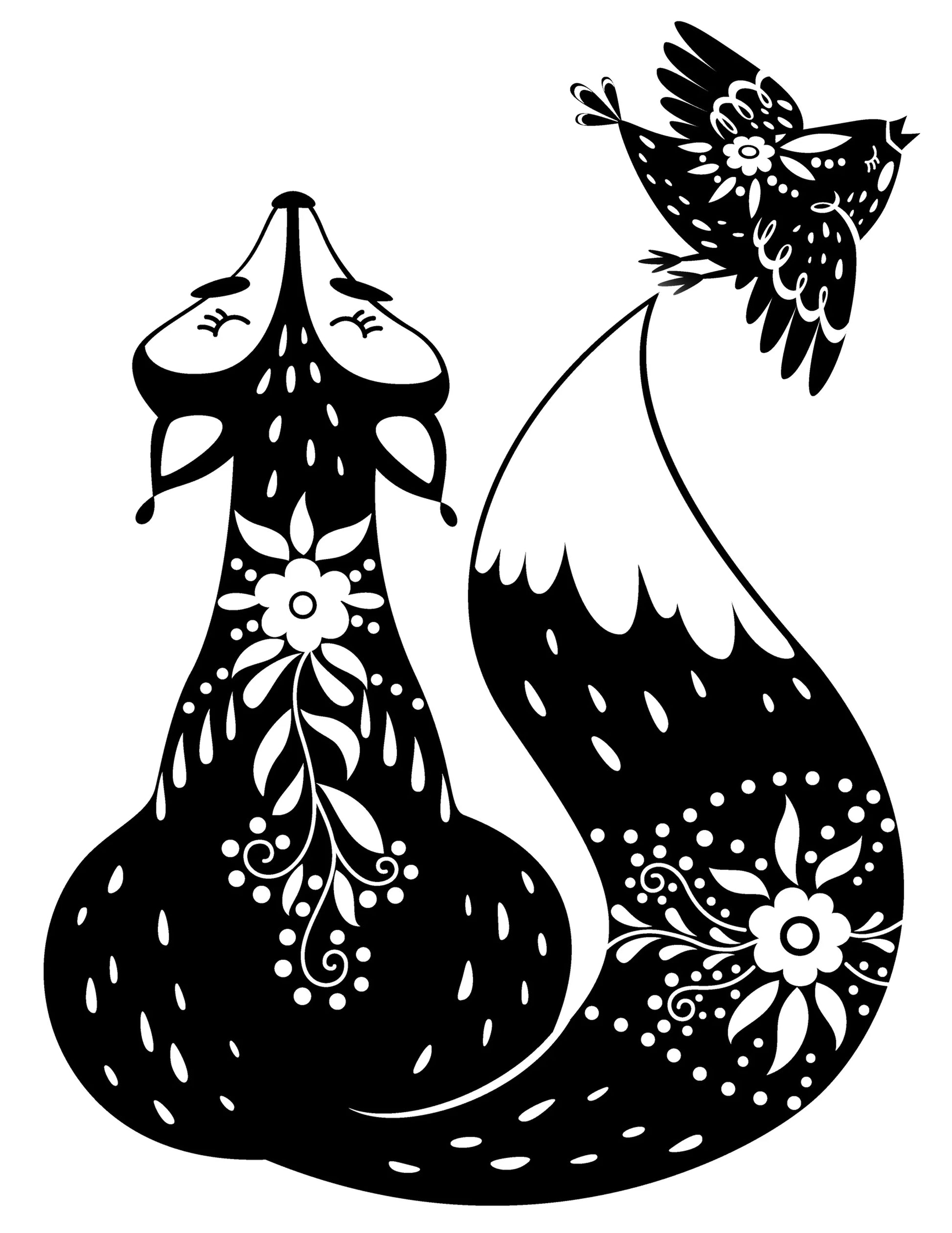 Striking, simplistic Scandinavian styled folk art of a fox.