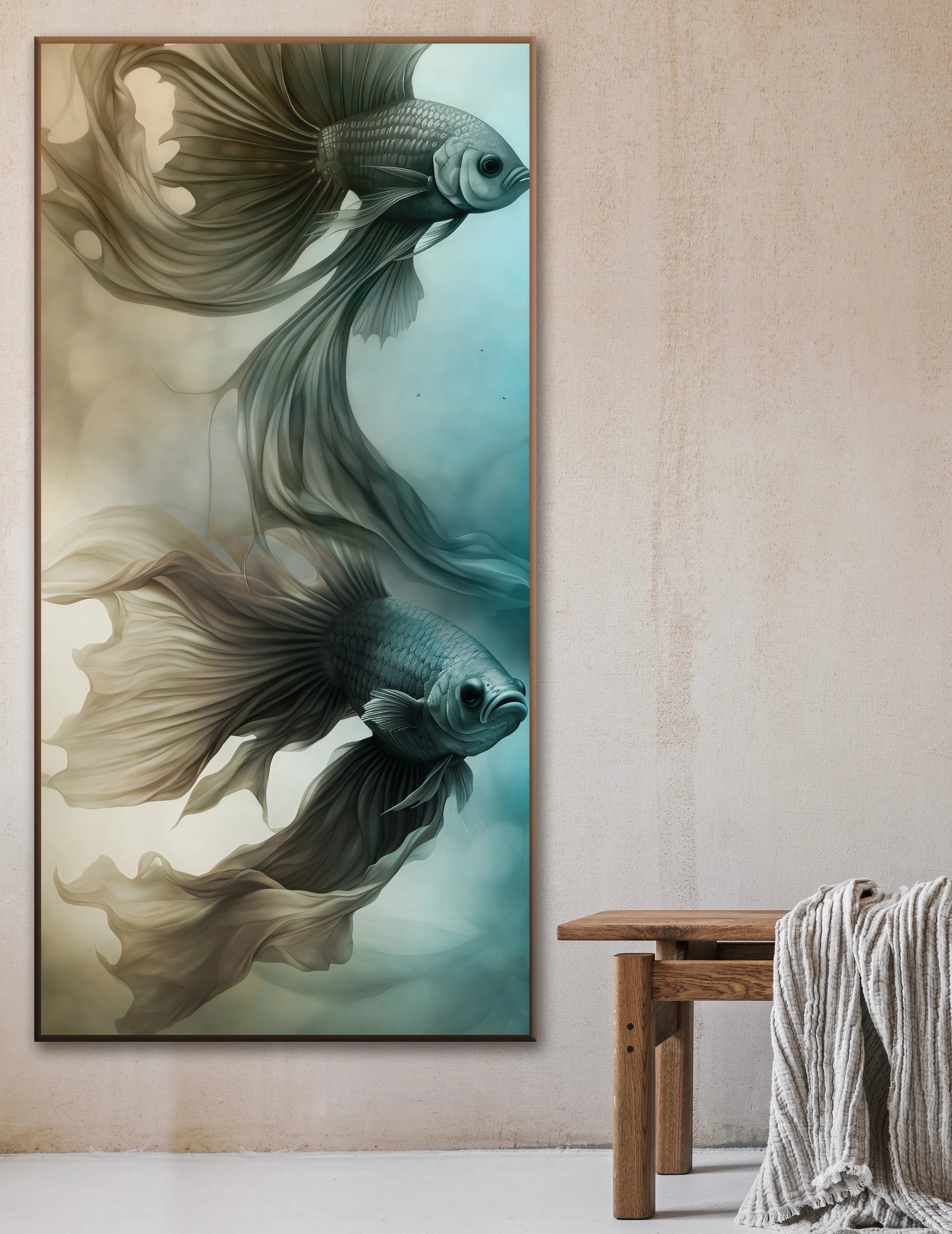 The art print is printed onto canvas and wrapped around a hand-built timber frame with a measurement of 3cm. A backing board is added to provide rigidity and frame stability.